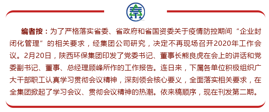 会议指出,权属各单位及总部各部门要分别组织传达学习,让全体员工认真学习讲话内容,深刻领会会议精神,根据实际工作情况,全面落实集团公司各项要求,复工后收集全员学习心得体会。各单位、各部门要对照2020年任务目标,狠抓市场、优化管理、严控成本、落实主体责任,全面完成目标任务。