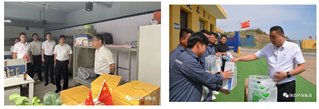 骄阳似火,酷暑难当。各位带队领导先后前往绿色能源公司、水环境公司、三秦环保股份公司等11家二级企业所属的14个项目点进行慰问,包含污水处理、固废处理、生产运维等重点项目和乡村振兴驻村点,将450份慰问品送到一线职工和驻村干部手中,为高温作业的职工送去实打实的关爱。