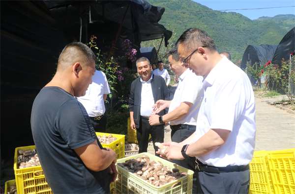 郝军亮实地察看梁家山村果酒生产线和袋料香菇种植基地,详细了解产业规模、市场销售及带领群众增收情况。他希望当地产业带头人牢固树立品牌意识,利用好得天独厚的生态优势,不断提升经济效益,努力让当地群众从“绿水青山”中获得更多“金山银山”。
