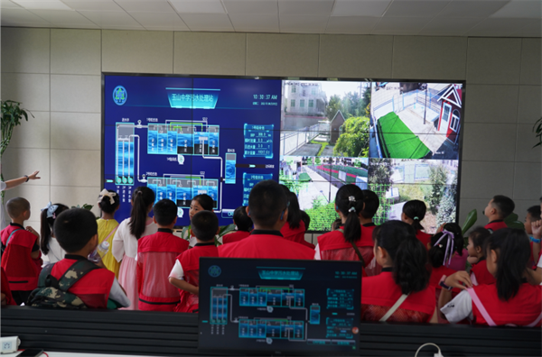 小记者们参观了白鹿原水生态中心的中控室,在中控室通过操纵台清晰的看到整个中心的运行,厂内所有的设备操作都是在中控室进行统一监控和操控。在参观中无法到达的地点,均可以通过中控监控了解到,智慧化的指挥中心让小记者连连称赞。
