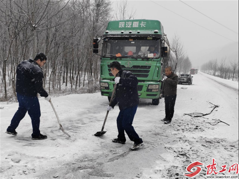 同时,大秦公司积极与交通、路政等部门取得联系,在说明情况后,争取了政府相关部门支持,项目各部门职工顶风雪、冒严寒进行道路铲雪、撒盐等行动。经过几个小时不间断作业,雪却越下越大,无法满足正常通行条件,车辆依然不具备通行条件,被滞留原地。公司与电厂积极沟通,协调抢险物资供应,支援力量为恢复通行、供暖保电提供了有力支撑。在全体职工连续30多个小时撒盐、铲雪等行动的奋战下,道路恢复了通行,载满100吨石灰石的物资供应车到达电厂,后续7辆物资供应车也陆续抵达项目现场,保障了物资正常供应,平稳度过了险情。