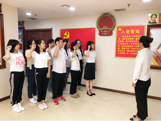 讲解员以叙事的形式,生动、细致地讲诉了博物馆内展品的历史和背后的故事,展馆中收藏的每一枚像章、每一张海报、每一本书刊都传递着革命先辈为党的事业不懈奋斗的历程。全体党员还一起重温了入党誓词,80个字的入党誓词,既是庄严承诺,也是全体党员终生的奋斗目标。